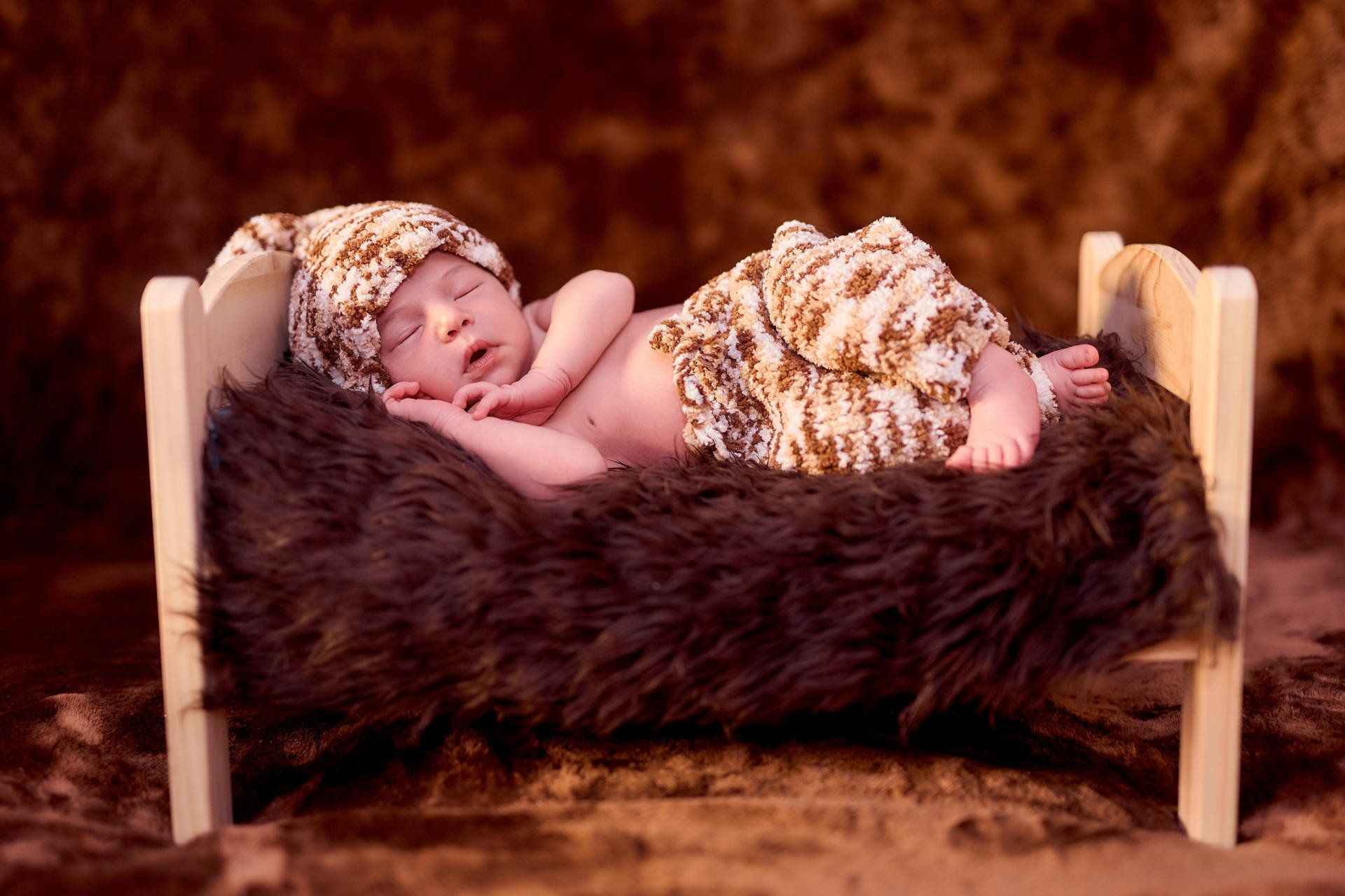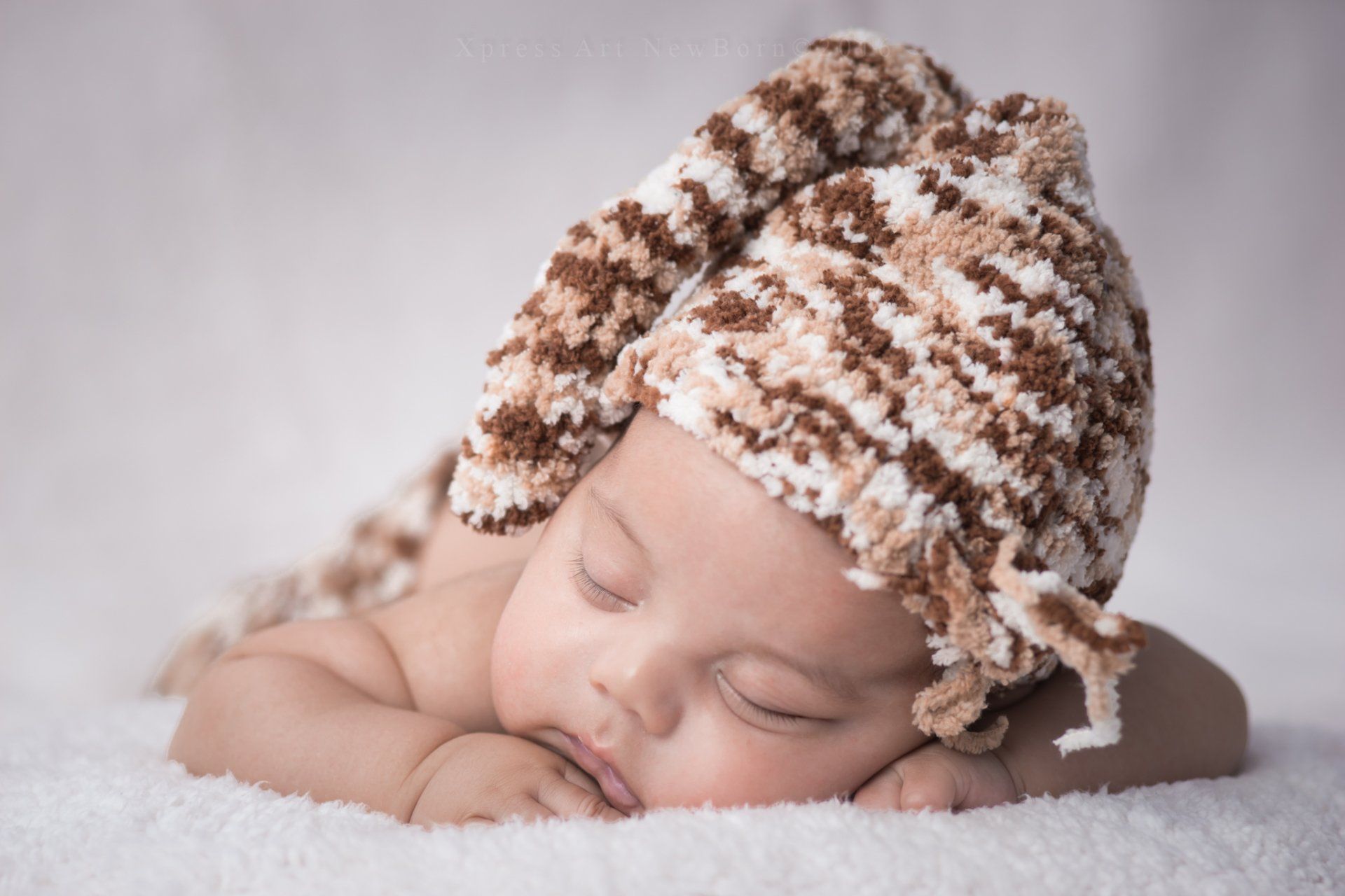 Ya que mantiene la posición fetal y el sueño profundo mientras lo acomodamos suavemente para cada fotografía.